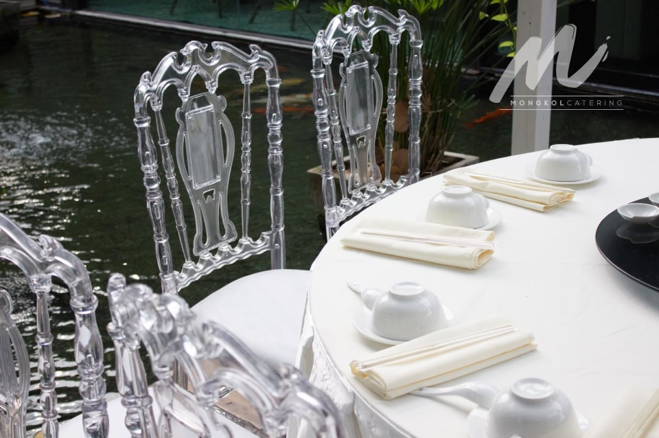แต่ข้อเสียของรูปแบบโต๊ะจีนหรือ Table Set คือการใช้พื้นที่บริเวณมาก 1 โต๊ะกลมสามารถนั่งได้เพียง 8-10 ท่าน หากมีผู้ร่วมงานมากแต่พื้นที่น้อย รูปแบบนี้อาจไม่เหมาะสมค่ะ นอกจากนั้นยังมีเรื่องของการจัดโต๊ะที่นั่ง หากแขกไม่รู้จักกันมาก่อน อาจมีความเกร็งๆกันบ้าง จึงเป็นความลำบากใจเล็กน้อยของเจ้าภาพที่ต้องปวดหัวในการจัดสรรที่นั่ง