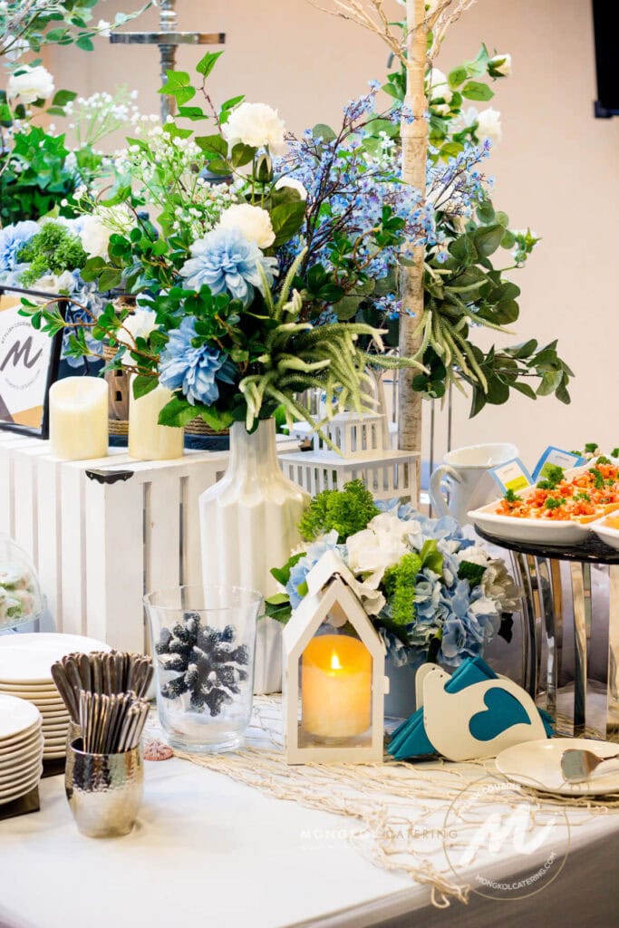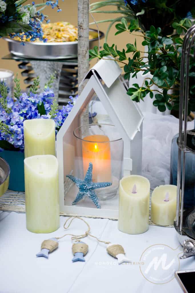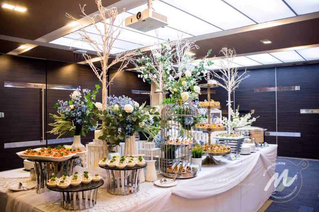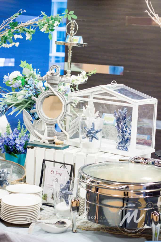จัดเลี้ยงค็อกเทลรับรองลูกค้าคนสำคัญของบริษัท Prima Marine ด้วยความที่บริษัททำธุรกิจเดินเรือเพื่อให้เข้ากับธุรกิจของบริษัทลูกค้า เราจึงตกแต่งไลน์อาหารสไตล์ ท้องทะเล แต่อิงสีขาวเพื่อให้ดูสะอาดตา ปราณีต