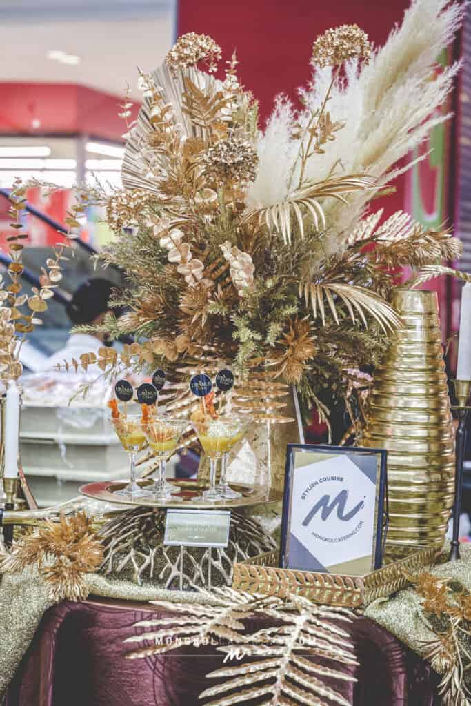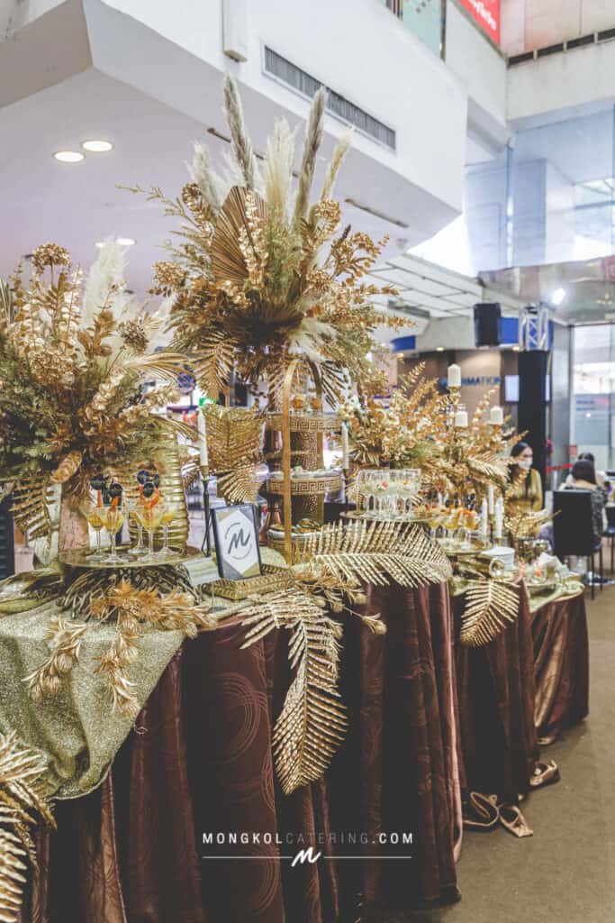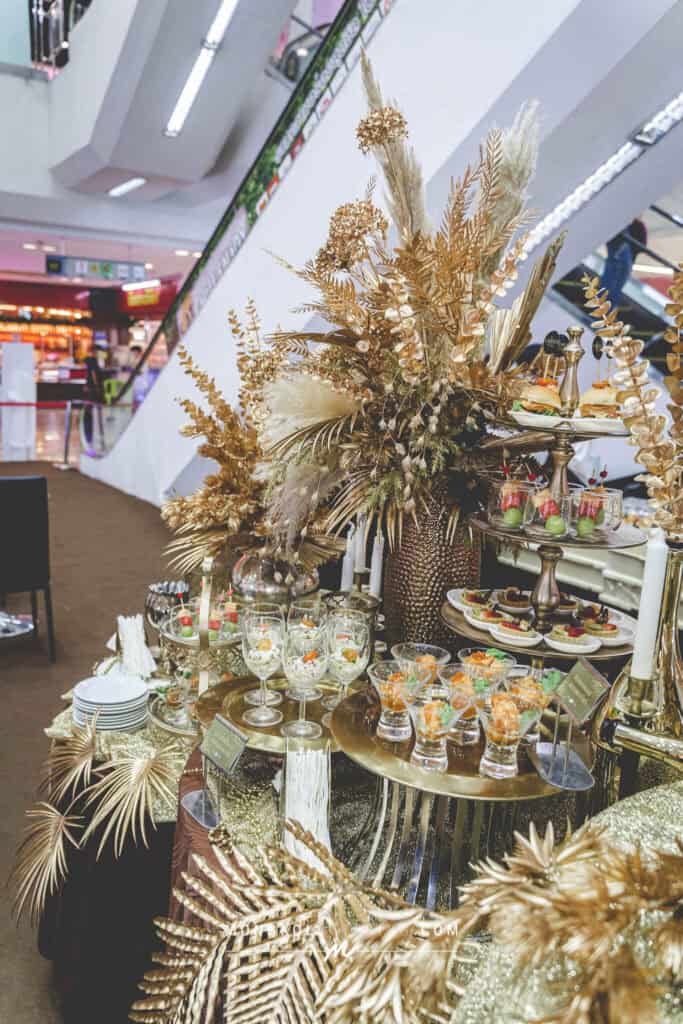 จัดเลี้ยงค็อกเทล น้ำตาลทอง โซนอาหารใหญ่ๆเบิ้มๆ สีทองสุดหรูให้เข้ากับ คลีนิคเสริมความงาม ที่กำลังมาแรง Uranus Clinic