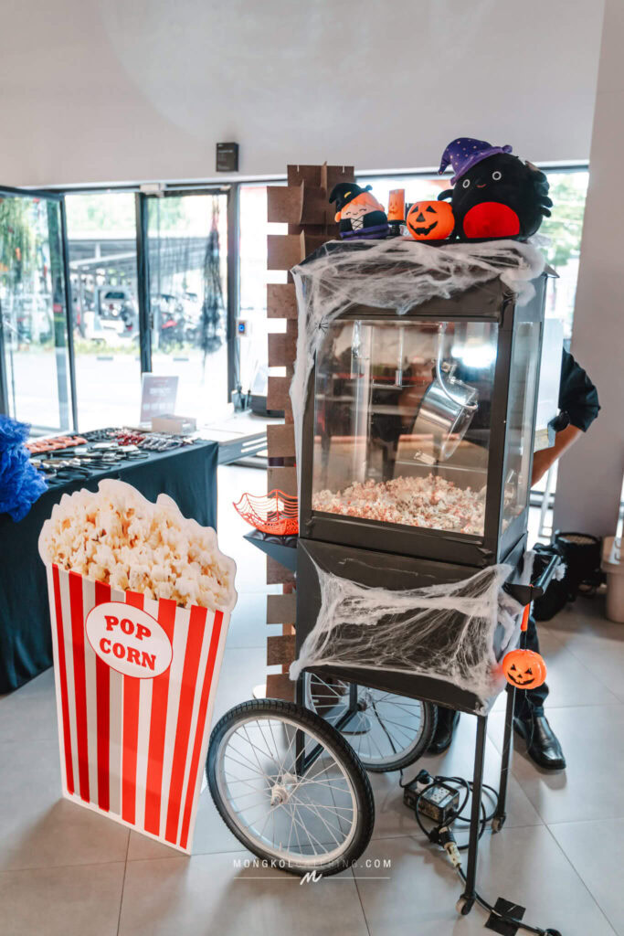 เมื่อคุณก้าวเข้ามา คุณจะรู้สึกถึงบรรยากาศที่แตกต่าง... สีแดงและดำที่เราเลือกมาไม่ได้น่ากลัวอย่างที่คิด แต่กลับชวนให้รู้สึกอบอุ่นและมีเสน่ห์ชวนหลงใหล เราจัดวางกะโหลกประดับดอกกุหลาบแดงเข้ม แสงเทียนที่กระพริบระยิบระยับ สร้างเงาที่เต้นระบำไปตามผนัง ทุกมุมถูกแต่งแต้มด้วยความพิถีพิถันที่ชวนให้ต้องหยิบกล้องขึ้นมาถ่ายรูป