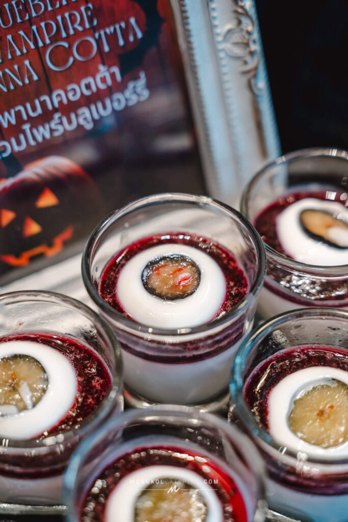 และที่พลาดไม่ได้เลยคือเมนูพิเศษที่เชฟของเราตั้งใจสร้างสรรค์ จะเป็นอะไรไปได้ถ้าไม่ใช่ "บลูเบอร์รี่แวมไพร์พานาคอตต้า" ที่นุ่มละมุนจนต้องร้องว้าว! หรือ "มอนสเตอร์เบอร์เกอร์" ที่ซ่อนความอร่อยไว้ในความน่ากลัว