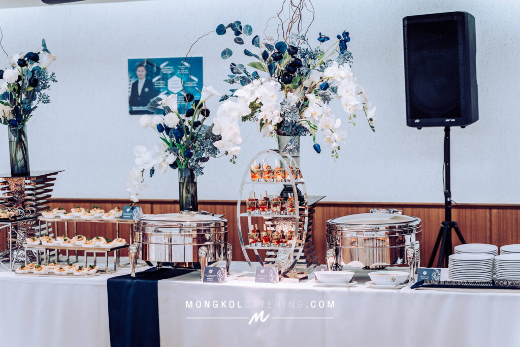 จัดโต๊ะนั่งทานและจัดเลี้ยงค็อกเทลโทนน้ำเงิน Navy blue @ สถาบันเทคโนโลยีป้องกันประเทศ