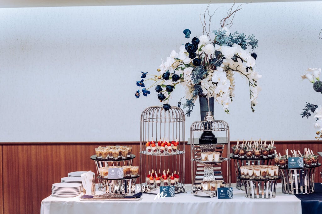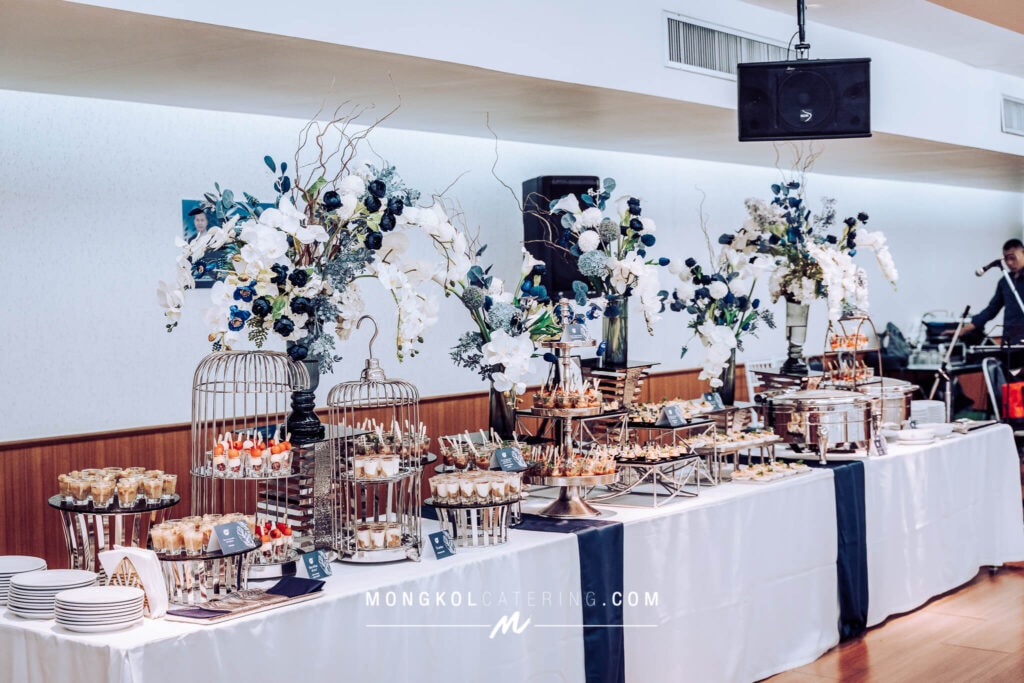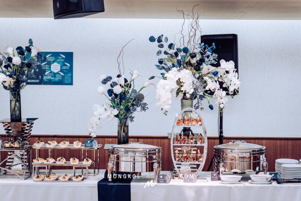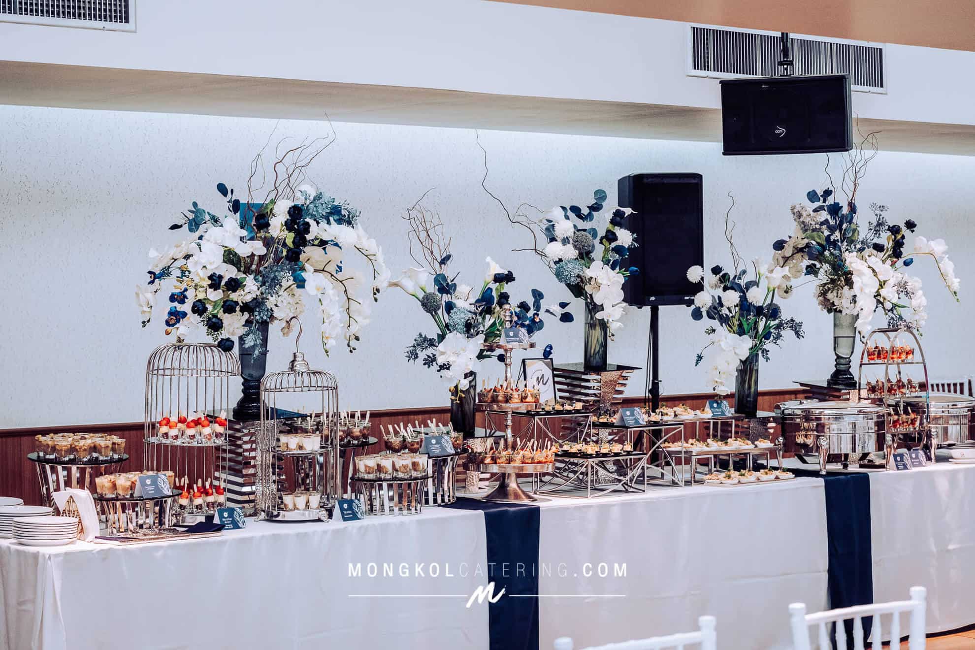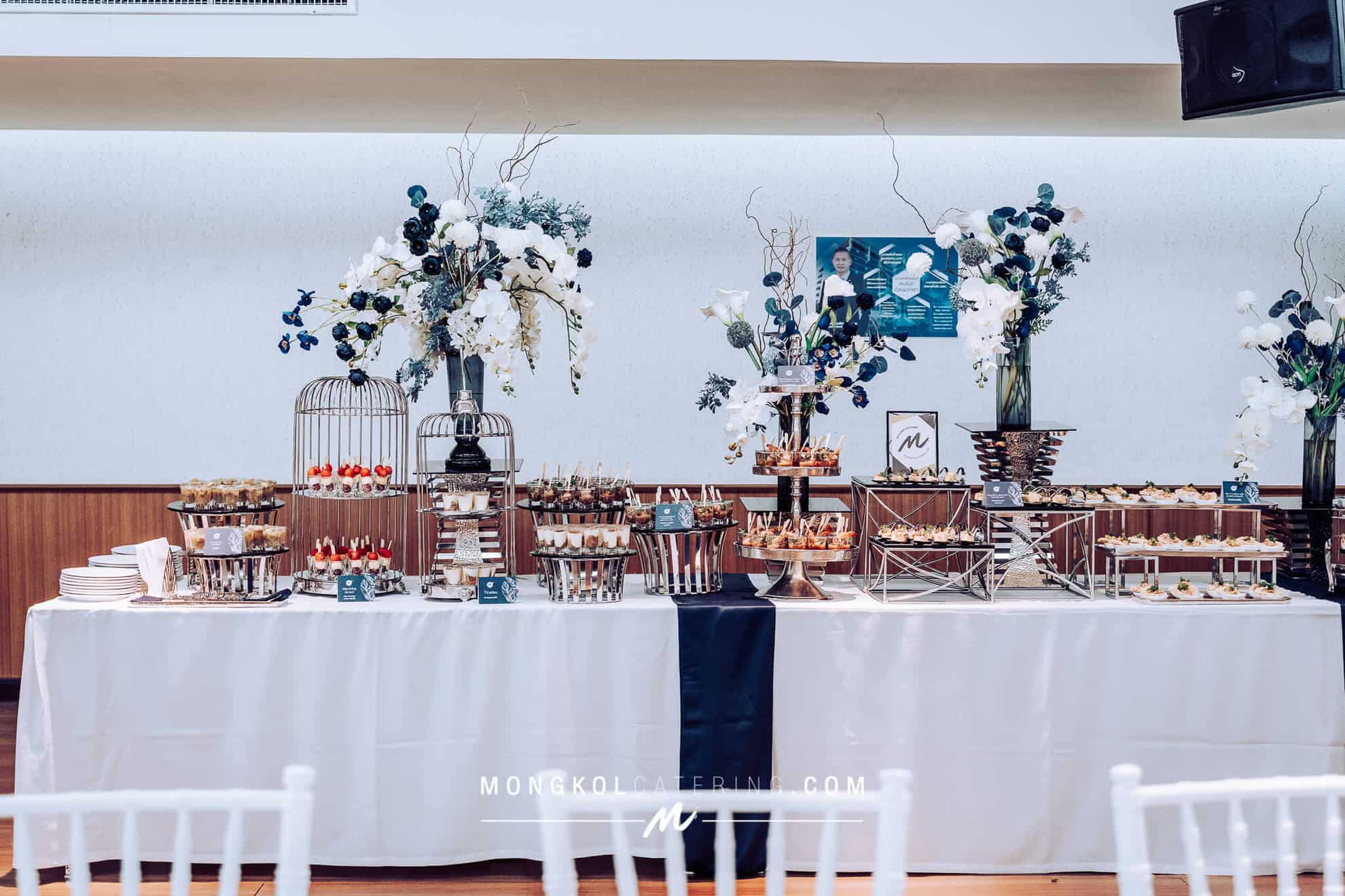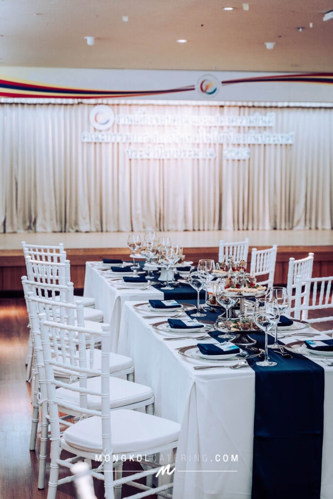 จัดโต๊ะนั่งทานและจัดเลี้ยงค็อกเทลโทนน้ำเงิน Navy blue @ สถาบันเทคโนโลยีป้องกันประเทศ