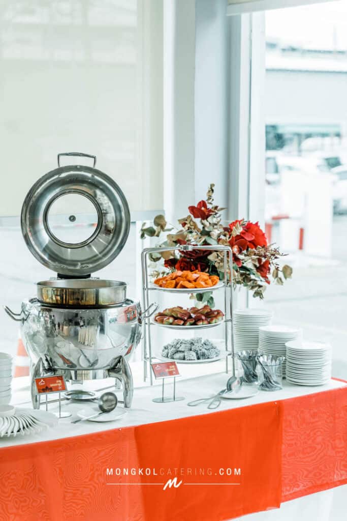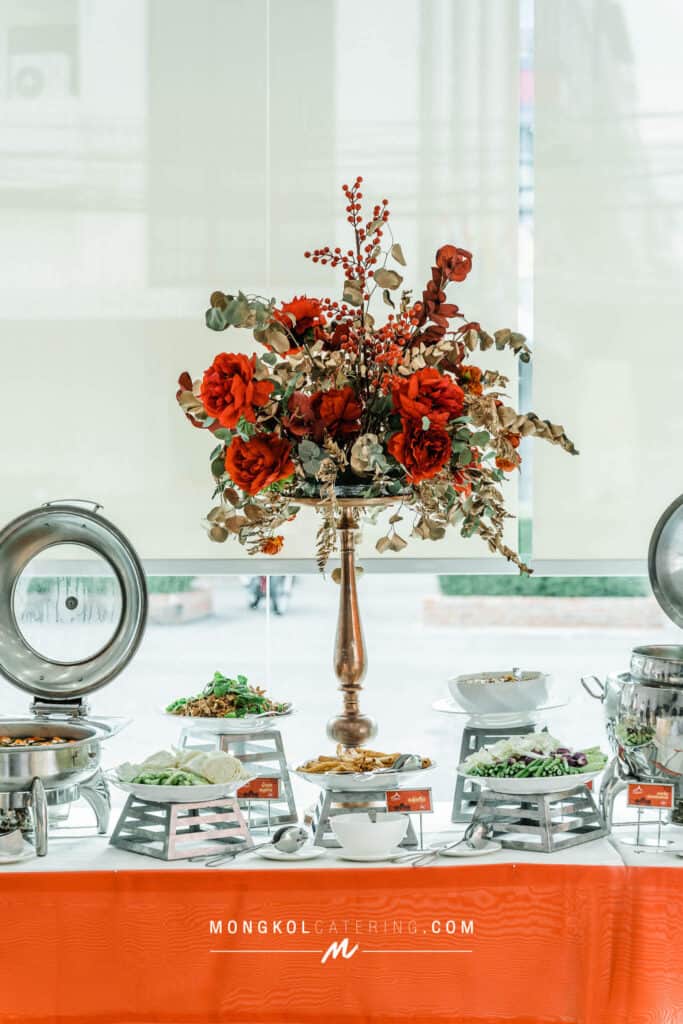 จัดตามตีมสีโลโก้ ตลาดสี่มุมเมือง เลยมาจบที่ จัดโต๊ะบุฟเฟต์ไทยสวยๆ ตีมสีแดง