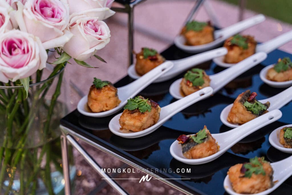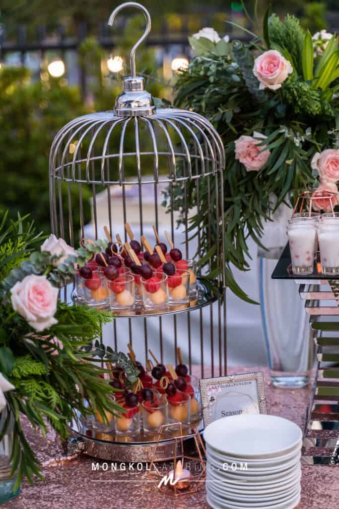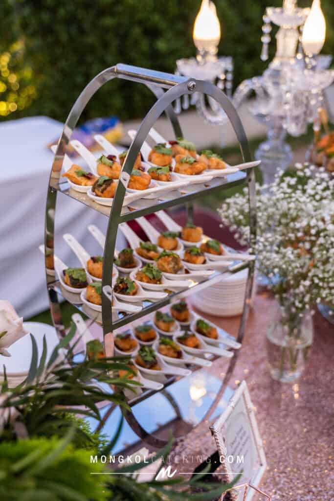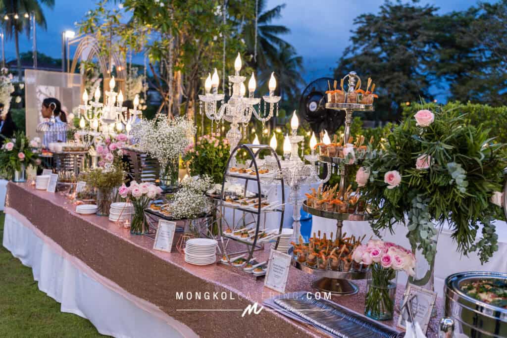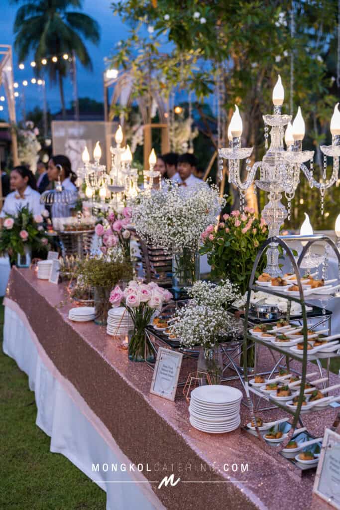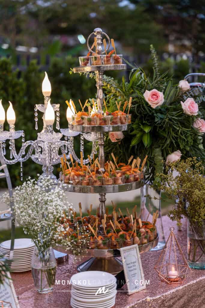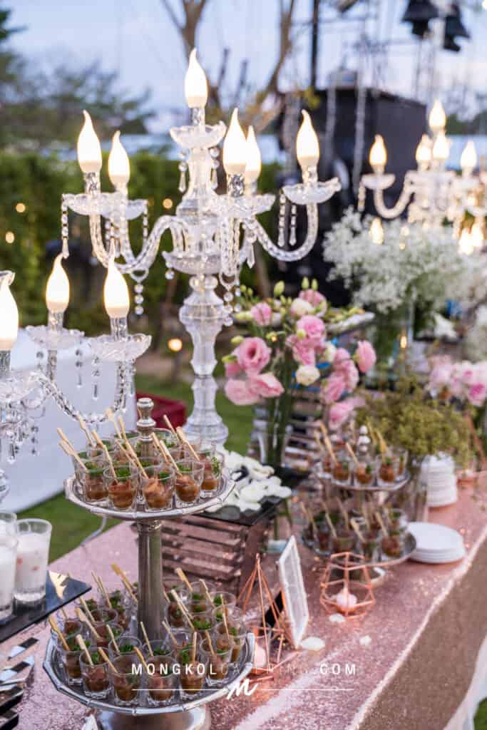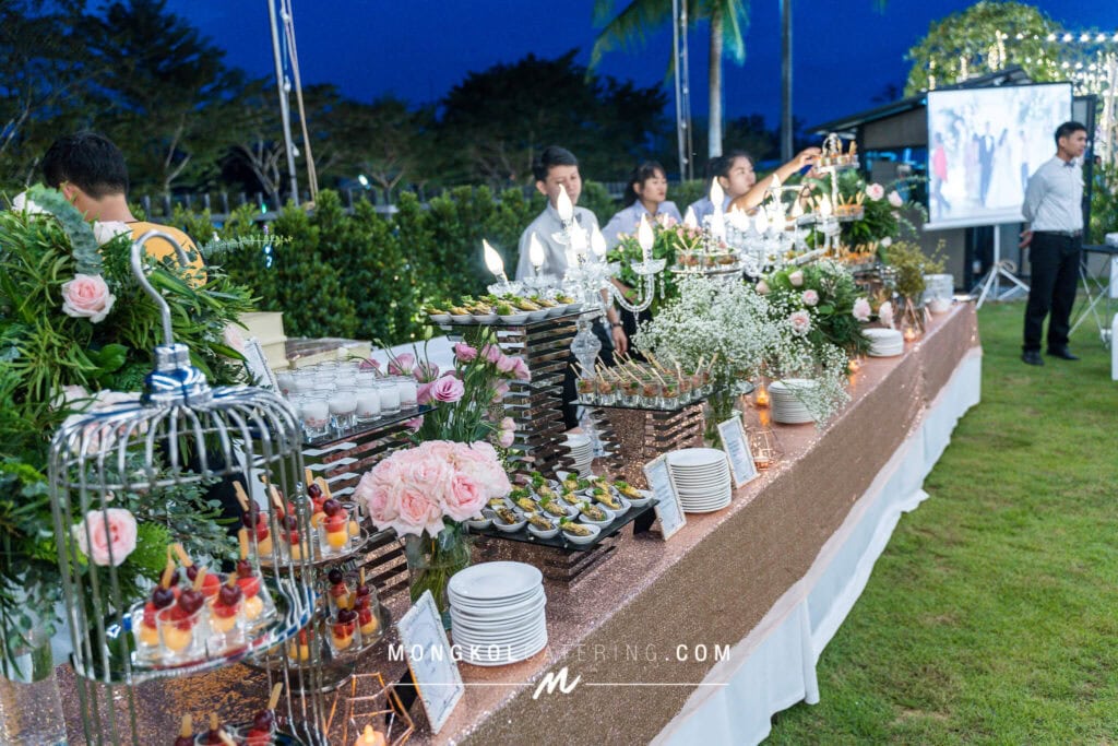 งานนี้ไปจัดไกลถึงจันทบุรีจ้า เป็นอาหารค็อกเทลพร้อมจัดโต๊ะนั่งทานสวยงาม